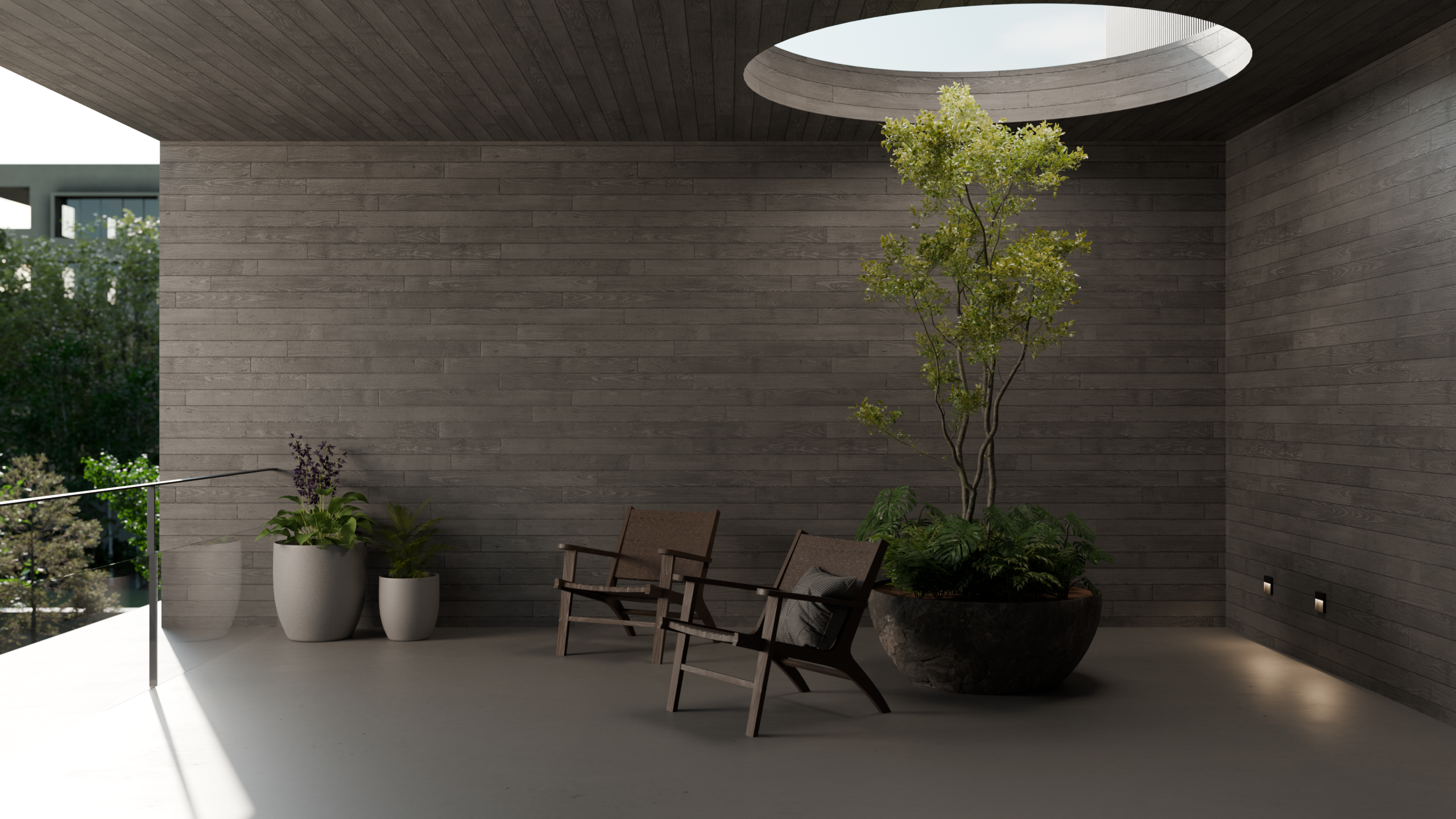 The architecture speaks through a restrained material vocabulary: wood-finished concrete, white oak, and marble floors form a consistent, tactile backdrop. Subtle transitions between materials ensure a quiet cohesion, where inside and outside, intimate and collective, feel part of the same whole.