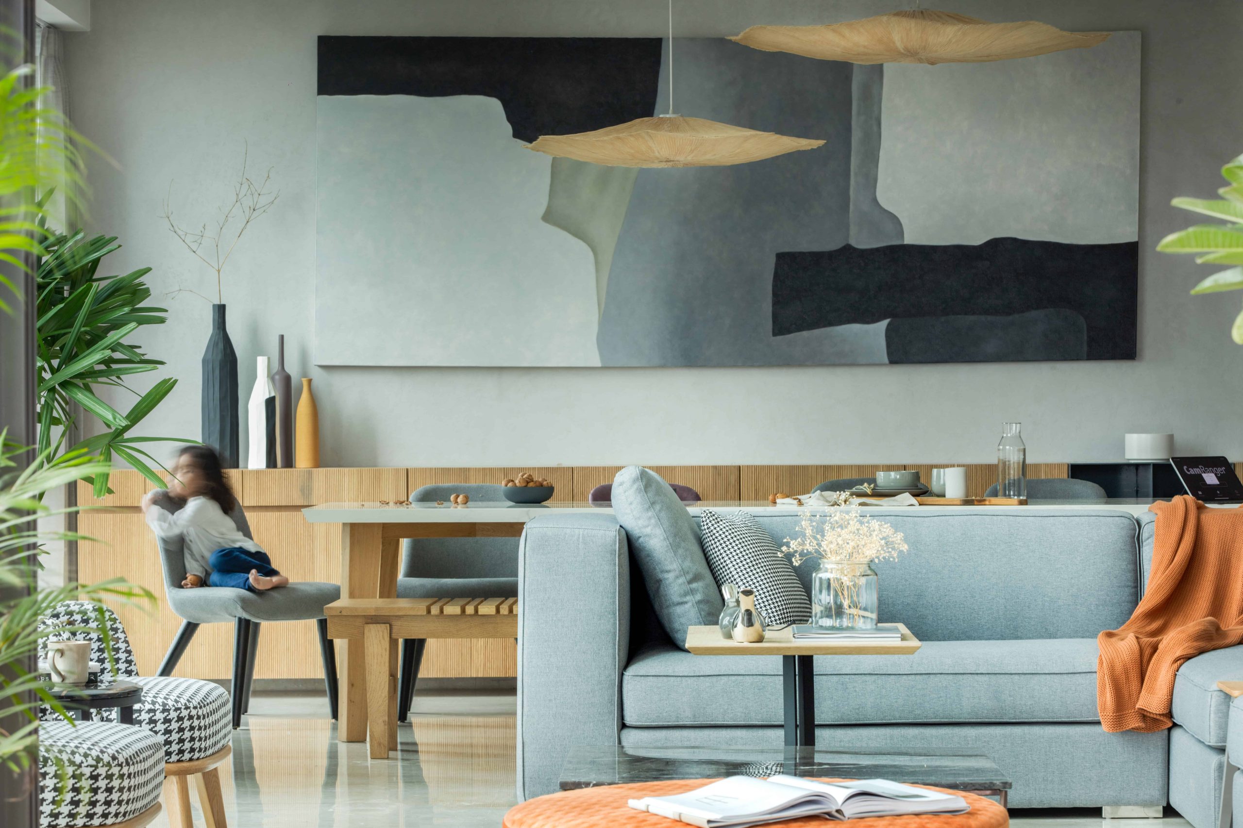 To add a touch of personality, contemporary artworks, and artifacts were used sparingly in shades of rust-brown and pale pink. Overall, these design choices helped to create a cohesive atmosphere throughout the home.