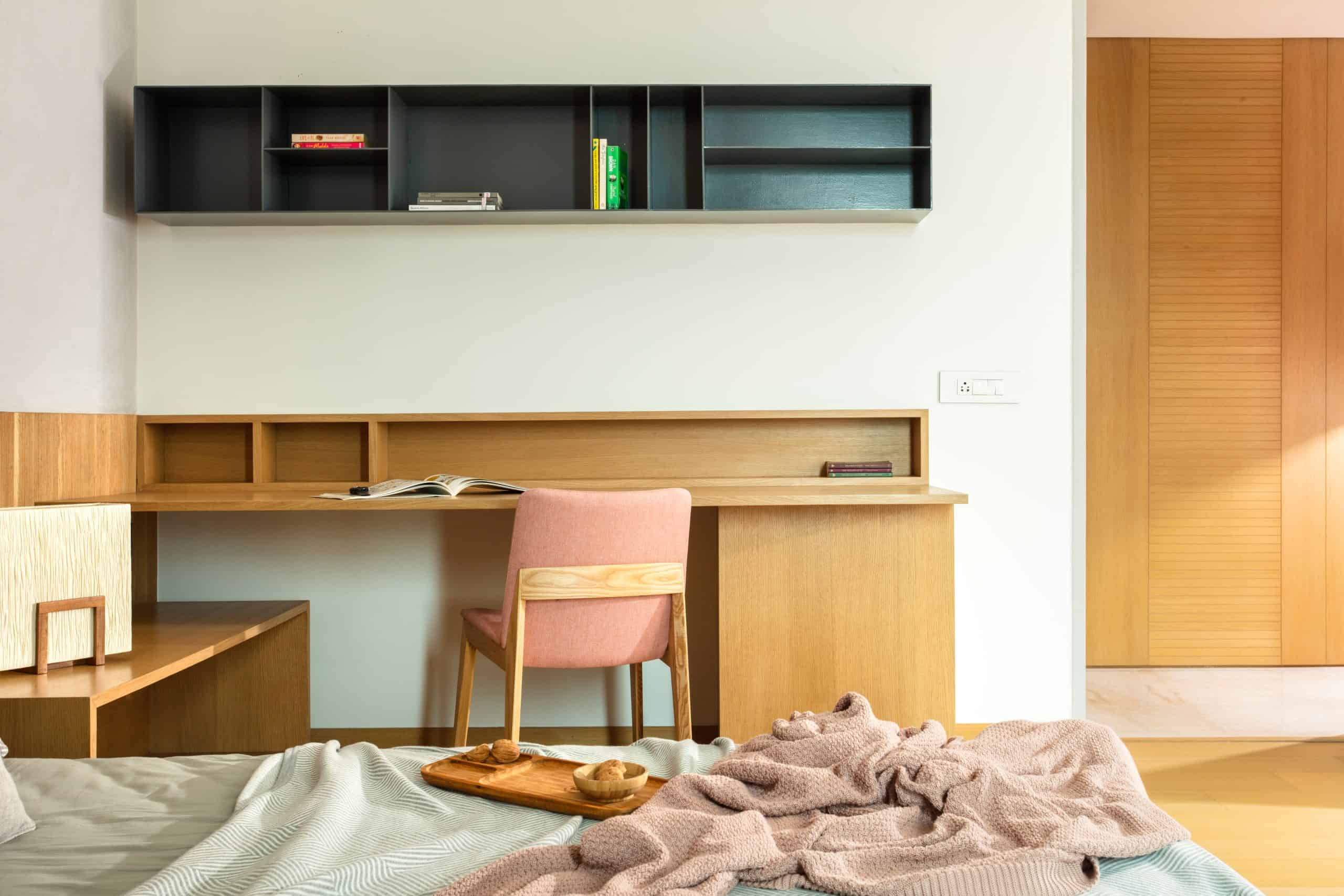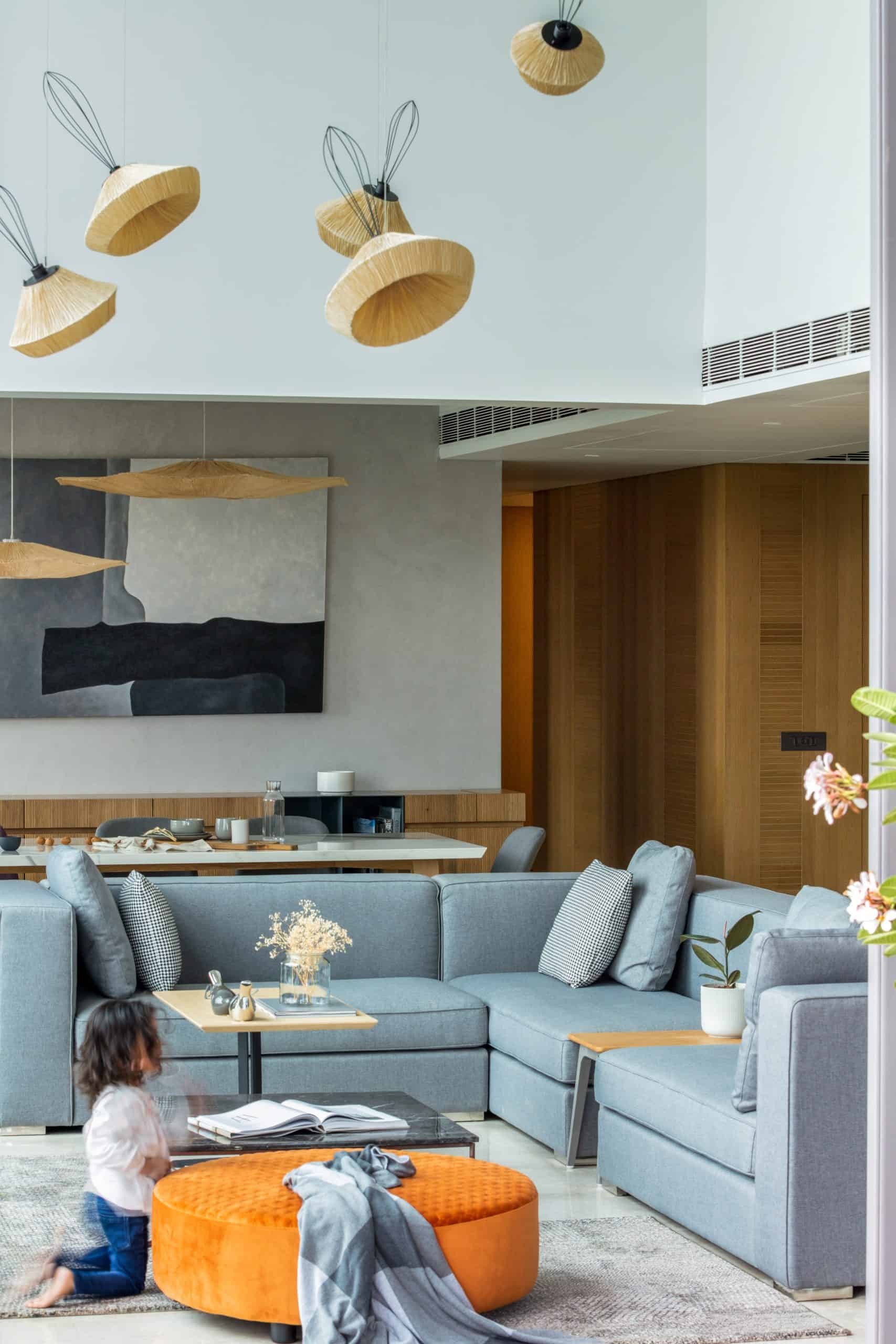 Located on the fourth floor of a modern high-end residential apartment called Seventy, this project is an attempt to create a calm, luxurious oasis for a family of doctors for their occasional visits to Ahmedabad.