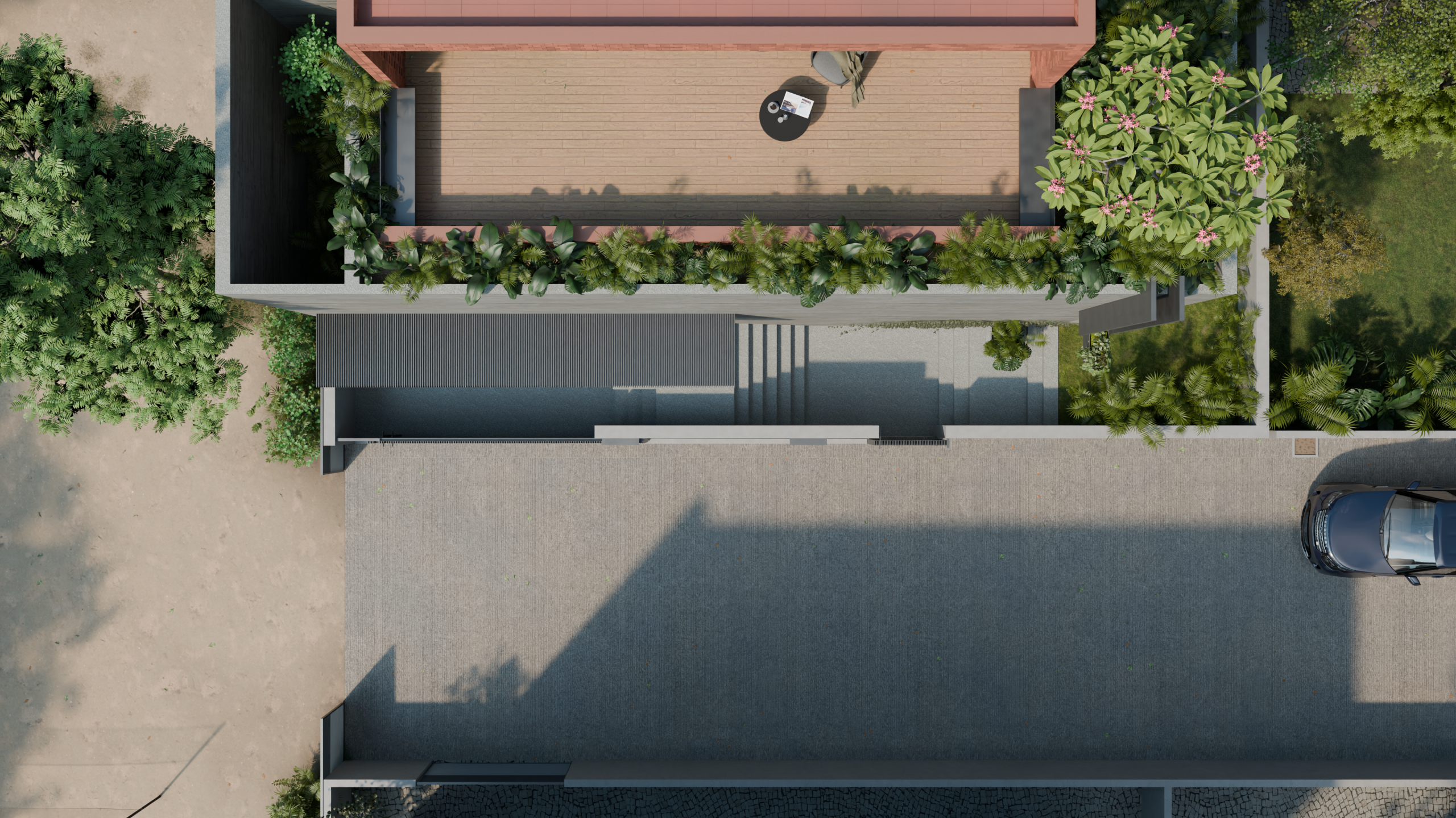 In the heart of the city’s bustle, this compact home fuses raw concrete with the warmth of brick and lush, integrated landscapes. It balances the demands of urban life with a deep respect for climate and context, while green pockets weave nature back into daily living, creating a home that feels both rooted and free.