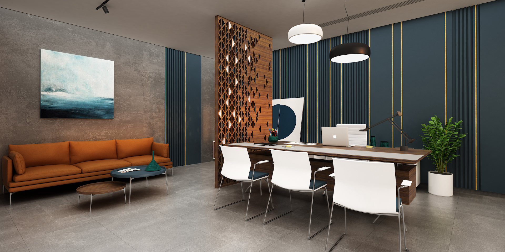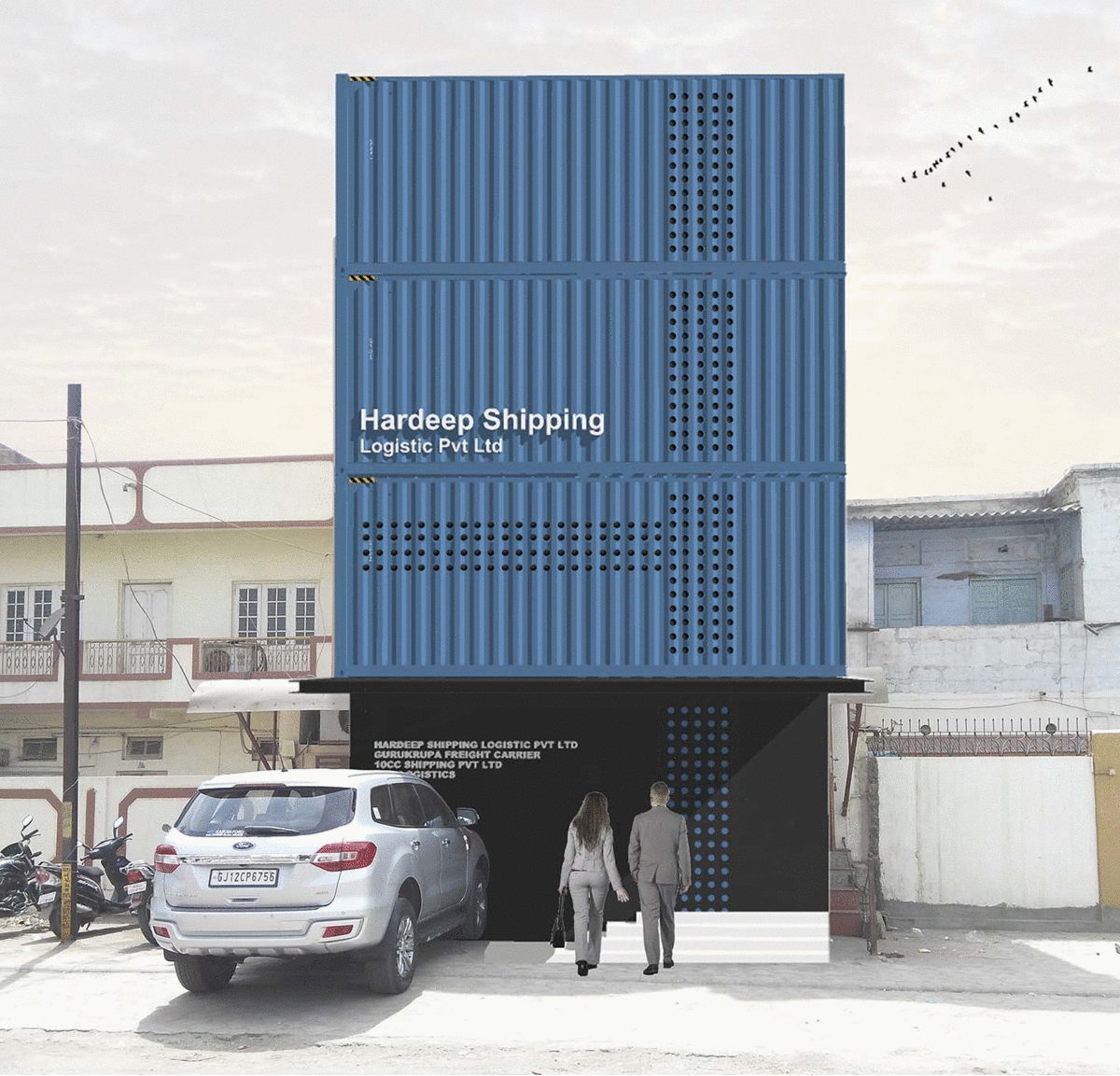 The existing building of a growing shipping and logistics company is located on an uncharacteristic street in the commercial prescient of Gandhidham. The project scope includes refurbishment of the exterior and interior design. The intent is to provide a fresh identity to the building and a contemporary working environment for the team.