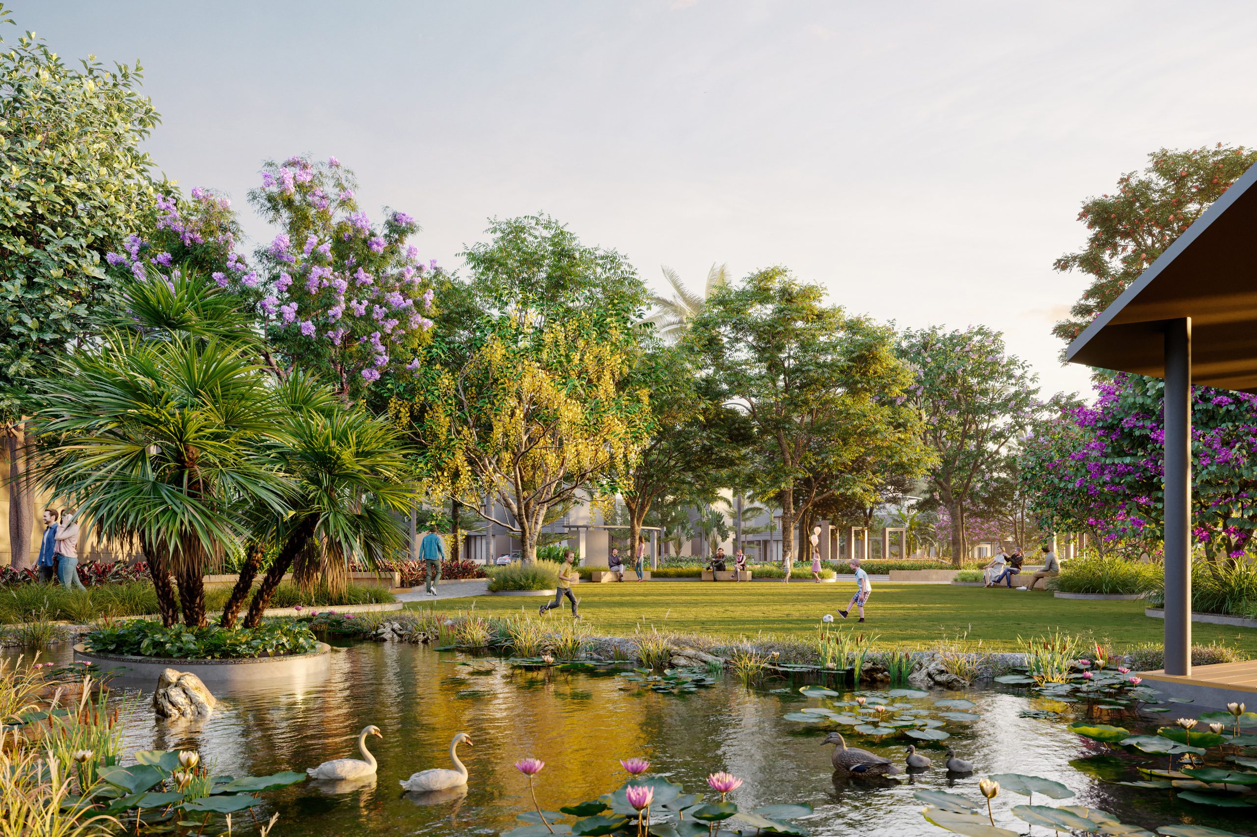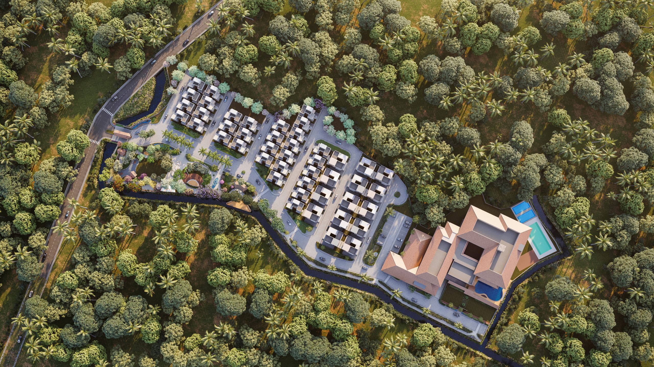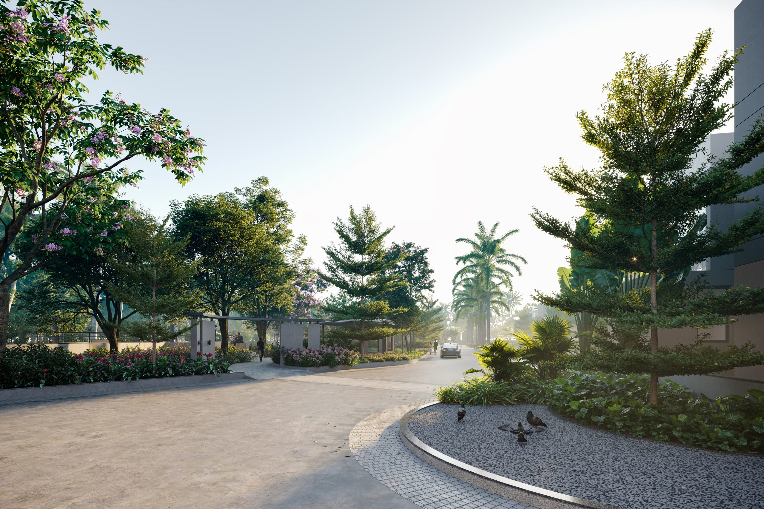 A dedicated pedestrian walkway starts from the common plot and stretches for one kilometer, uninterrupted by any vehicular movement. This stretch is positioned along a rivulet or ‘kotar’, allowing the residents to meander through the landscape and connect with nature, promoting their overall well-being. The entire project envisions rejuvenating and bringing people close to nature to make everyday living more enjoyable.