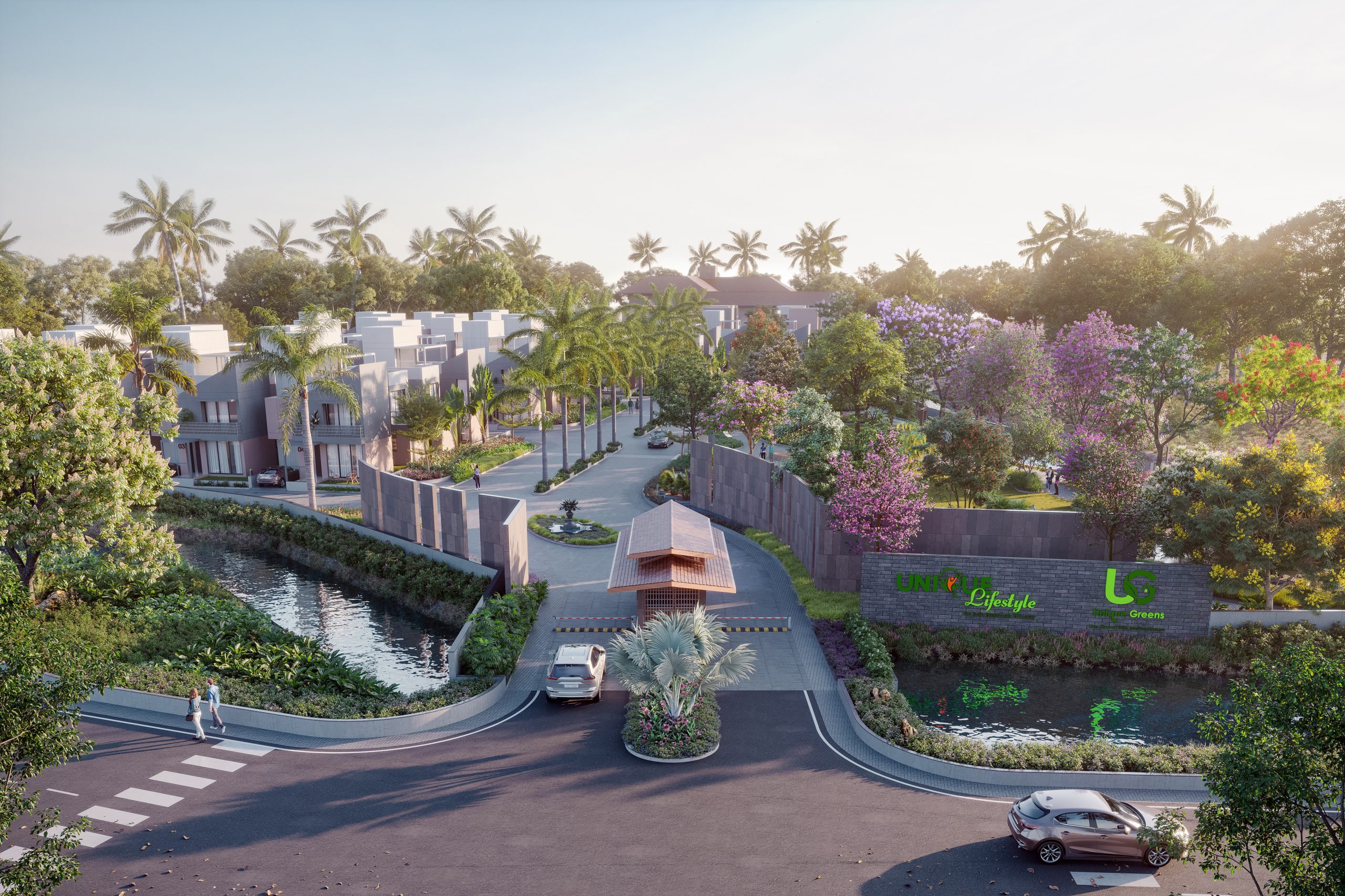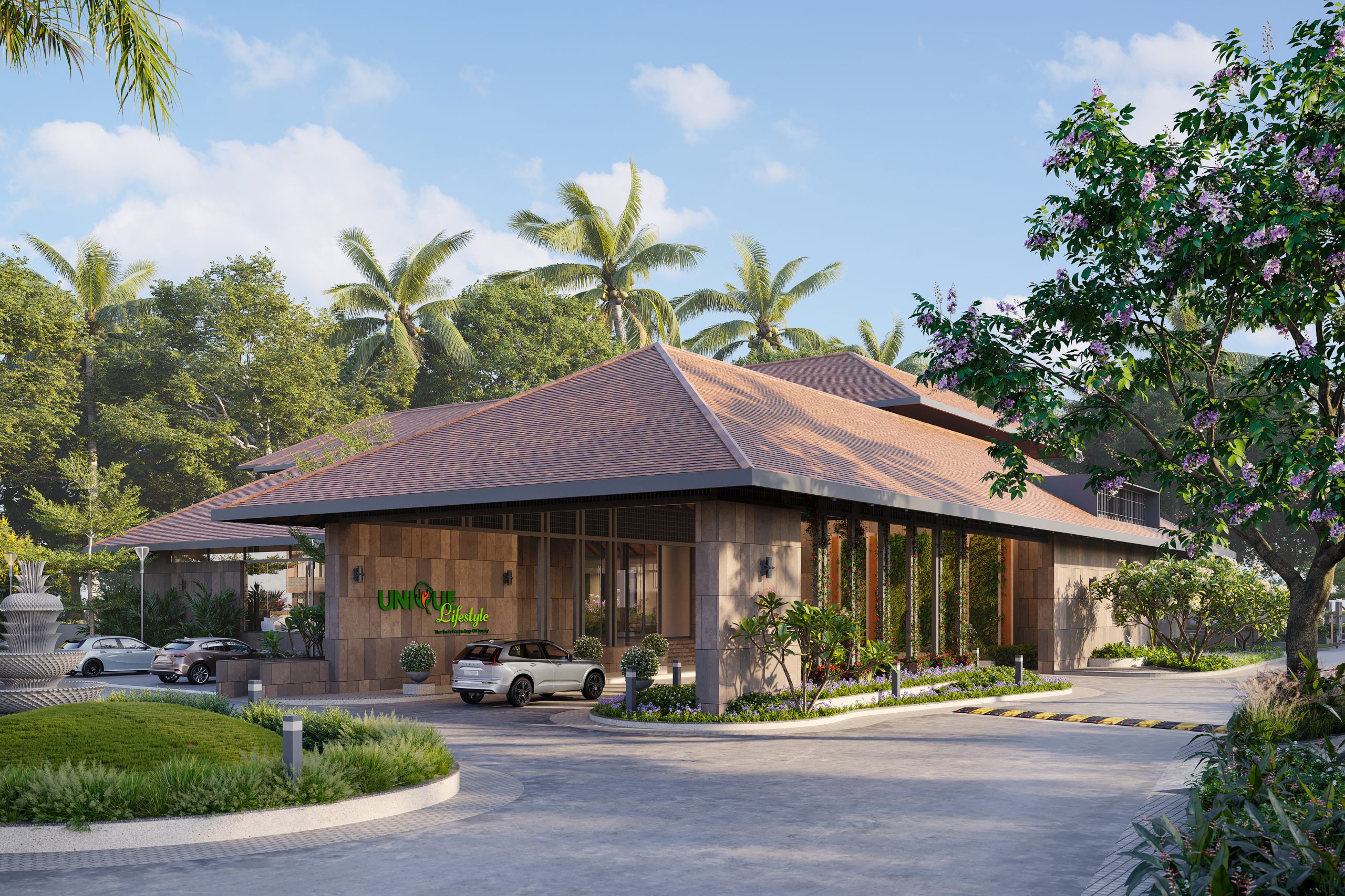 Unique Lifestyle Club is a part of a larger residential and recreational scheme on a coastal road near the outskirts of Valsad. With its proposed top-notch sports facilities, The Club has the potential to become a much sought-after destination for recreational activities. The scheme is divided into two zones – one, the recreational and social activities – The Club; and second, the residential development with 3 and 4 bedroom bungalows – Unique Greens. The Eastern half of the development is dedicated to residences while the Western half is a recreational area.